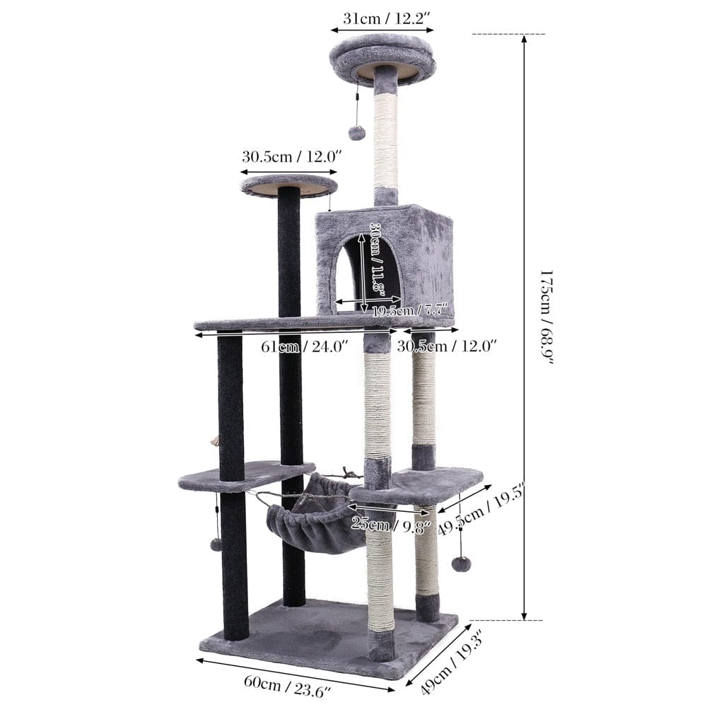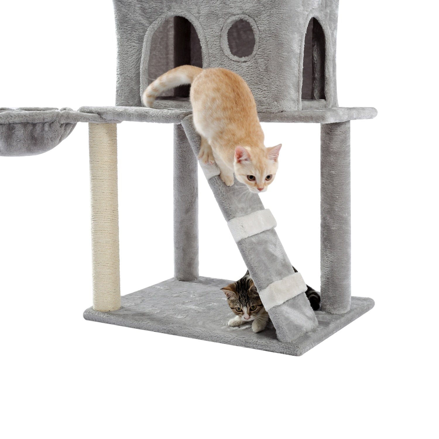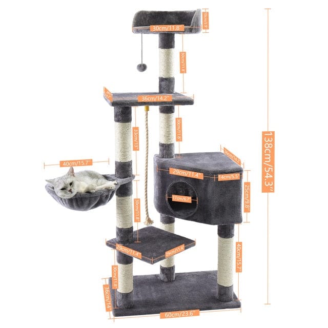 -Cats can lay on the hammock on the upper level